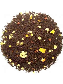 Zwarte Thee, aroma, citrusschil, kattepootjes (mimosa), cacaobonen, gember.